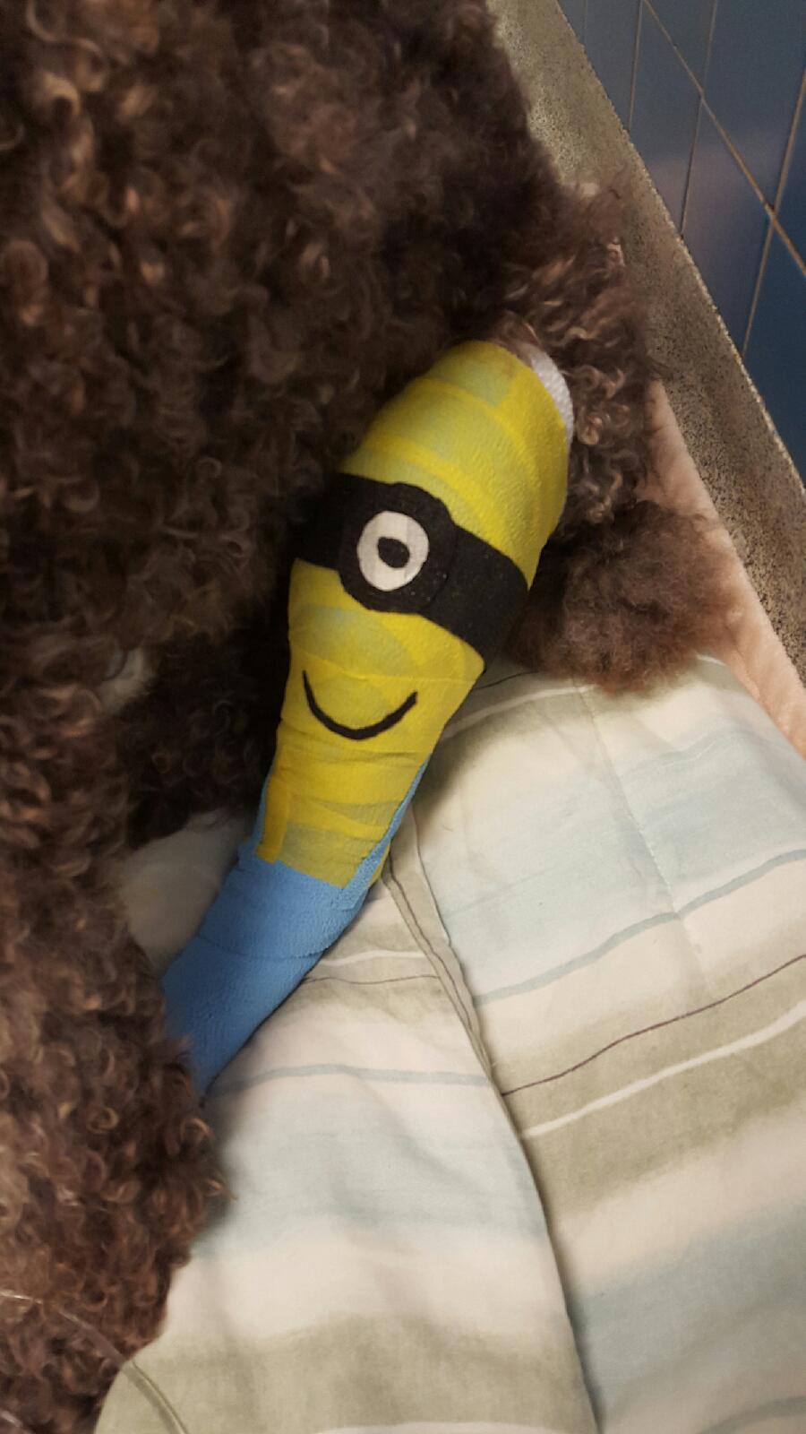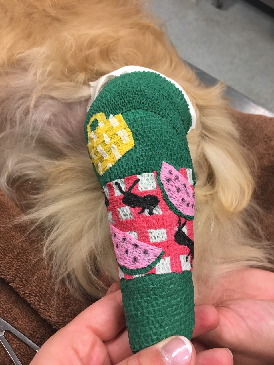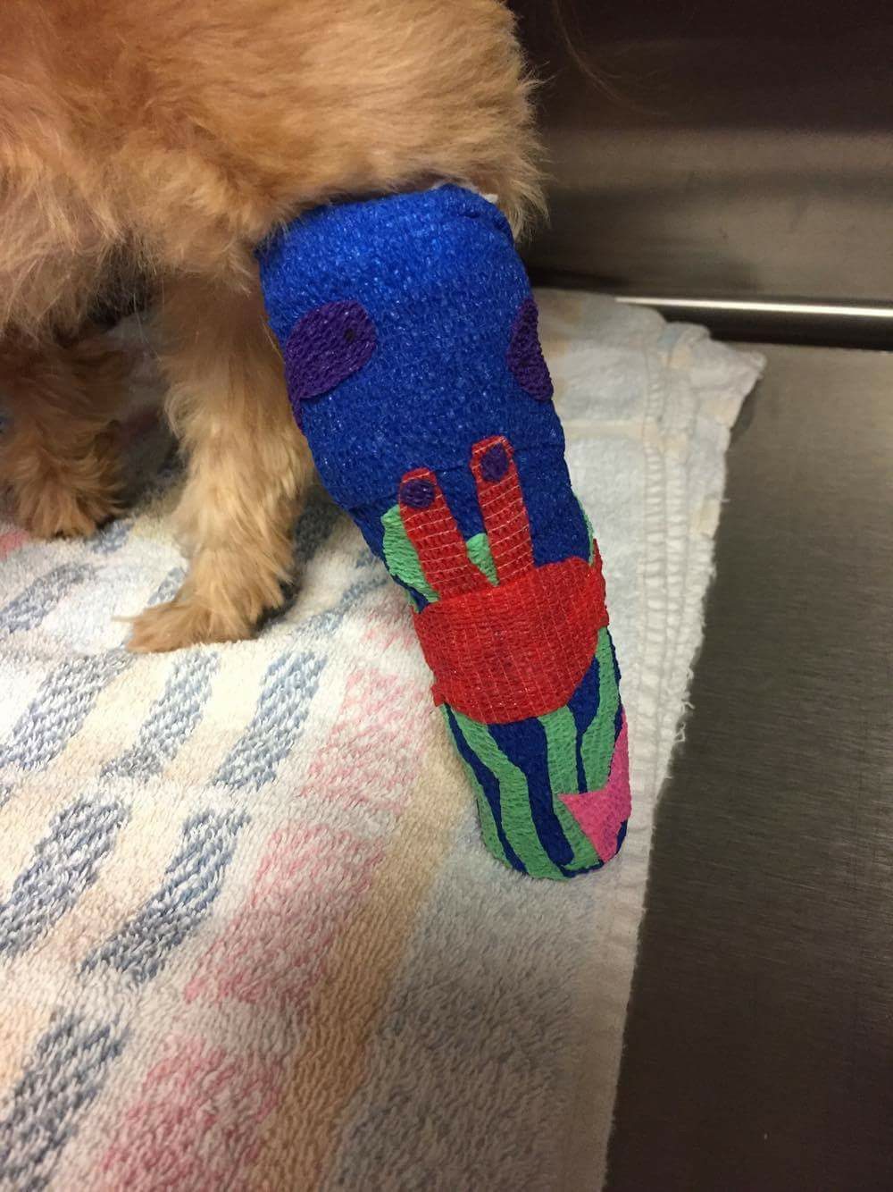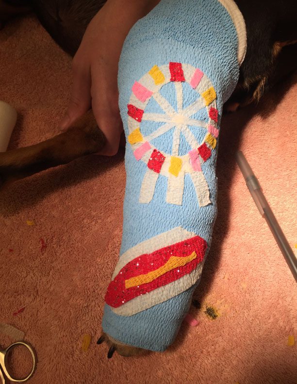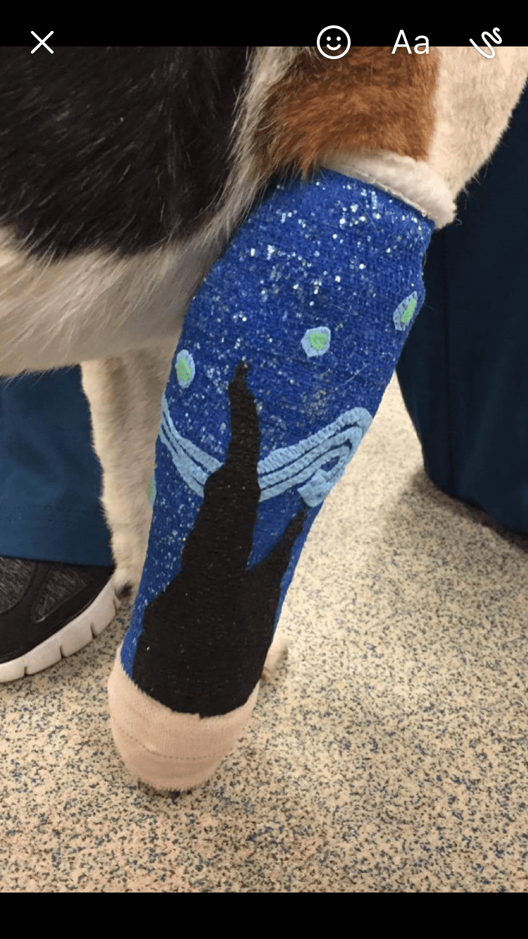 Who says veterinary medicine and the arts can’t go hand in hand? For the last few months A2AH staff has been putting their creative minds to the test and developing personalized bandages for owners and their pets. Check out these bandage art masterpieces!